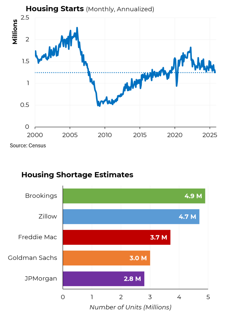 All told, a variety of experts have calculated that the country is short somewhere between 2.8 million homes to nearly 5 million homes. (There are currently approximately 148 million dwelling units in the country.)