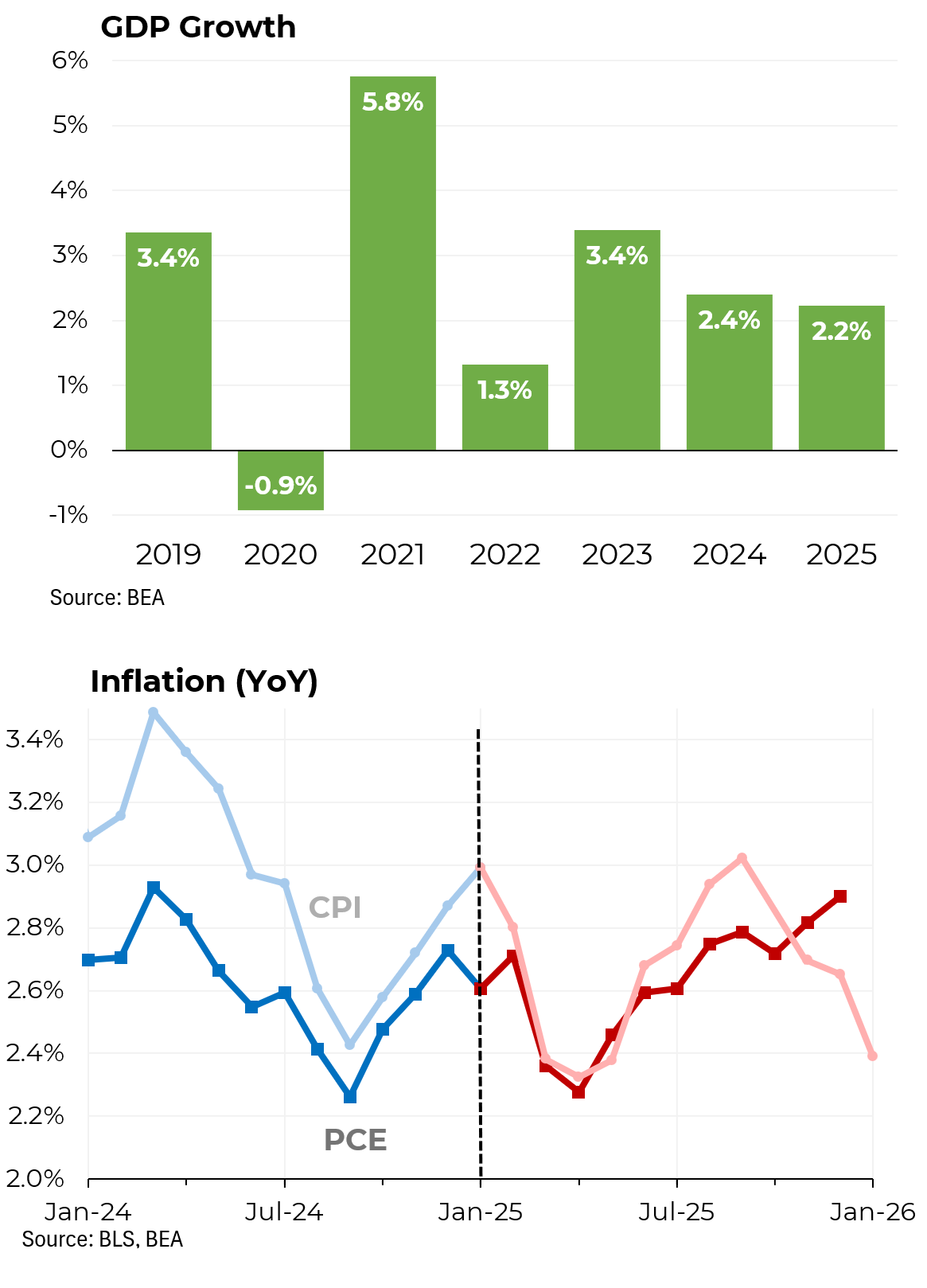 Nor did Trump inherit “inflation at record levels.” Indeed, inflation had already fallen sharply from its Covid-era highs and was around 3% when Trump took office. And while the rate of increase in the Consumer Price Index was down to 2.4% by year end, a more accurate measure of price increases favored by the Federal Reserve – the Personal Consumption Expenditures index – had risen to a 2.9% rate from 2.6% when Trump arrived. Fed chairman Jerome Powell has attributed most of the excess above 2% to the Trump tariffs.