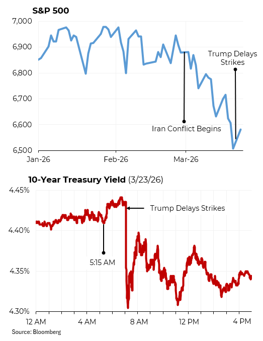 On Saturday night, President Donald Trump threatened to intensify his bombing of Iran. Early Monday morning, he reversed course and announced that he was having “very good and productive conversations” with Iran and would postpone until Friday his threats to attack Iranian power plants and energy infrastructure. While course reversals by Trump are hardly unusual, the speed of this one was perplexing. What happened? Hint: Bill Clinton’s campaign manager, James Carville, famously said in 1994 that he’d like to be reincarnated as the bond market so he could “intimidate everybody.”